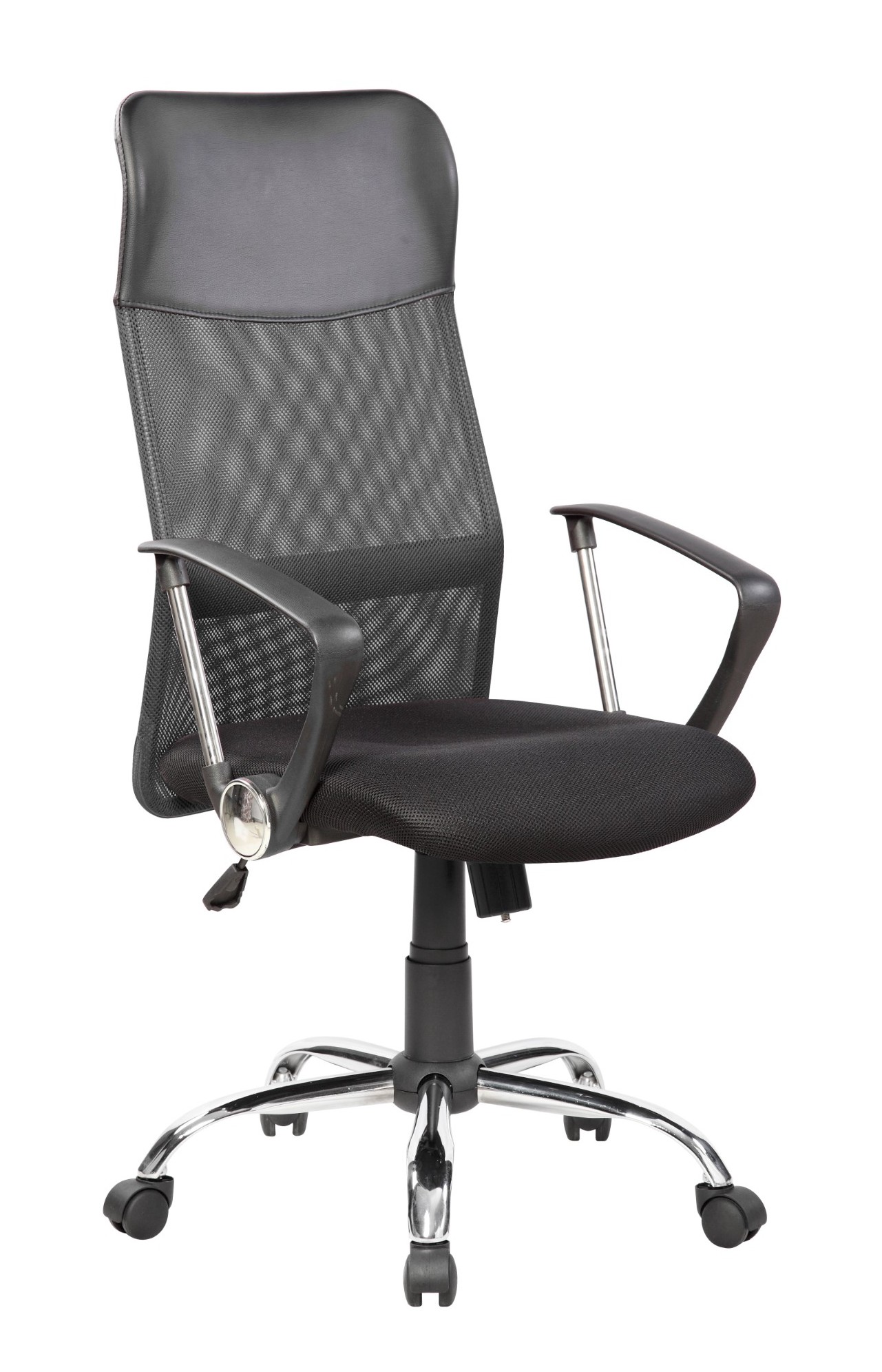 Fotel OXFORD posiada siatkowe oparcie w górnej części tapicerowane eko-skórą oraz siedzisko tapicerowane pianką i tkaniną 3D. Podłokietniki stałe. Mechanizm kołysania się z możliwością blokady w pozycji do pracy. Regulacja siły wychylenia oparcia. Podstawa metalowa, chromowana z kółkami do powierzchni twardych.